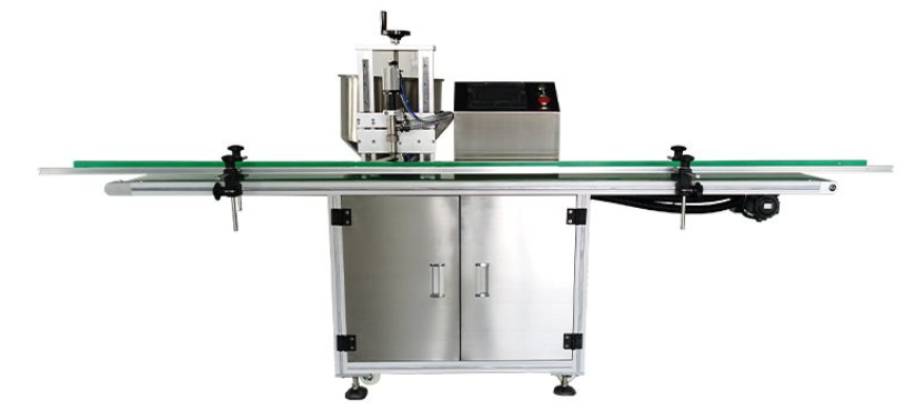 自動或人工上瓶→自動灌裝→人工放內(nèi)塞/放外蓋→自動旋蓋→成品輸送線