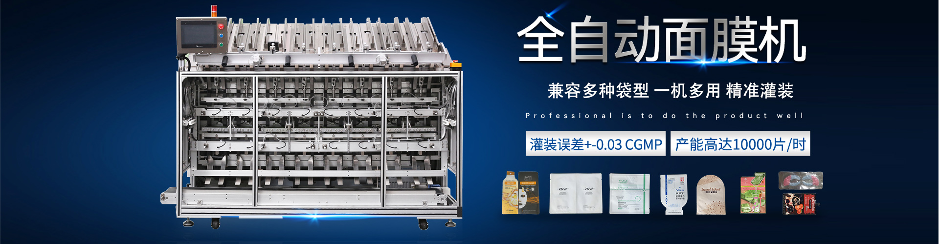 本產(chǎn)品是從事面膜產(chǎn)品的充填和封裝一體化的專業(yè)設(shè)備,具有衛(wèi)生,環(huán)保,高效,節(jié)省人力成本,占地面積小等特點。全觸摸屏+plc控制,動作高效,迅速,簡潔,四頭理論速度可以達(dá)到7200片/小時,十頭更多