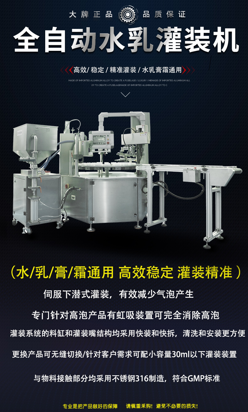 7.灌裝速度:40-60支/分鐘,對于不同容量粘度的灌裝膏體,設備灌裝精度可確保±1%,從底部開始的上升式灌裝灌裝閥拆卸方便,無需工具,可手動控制灌裝量
