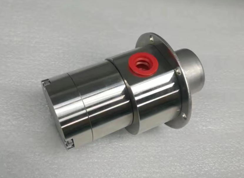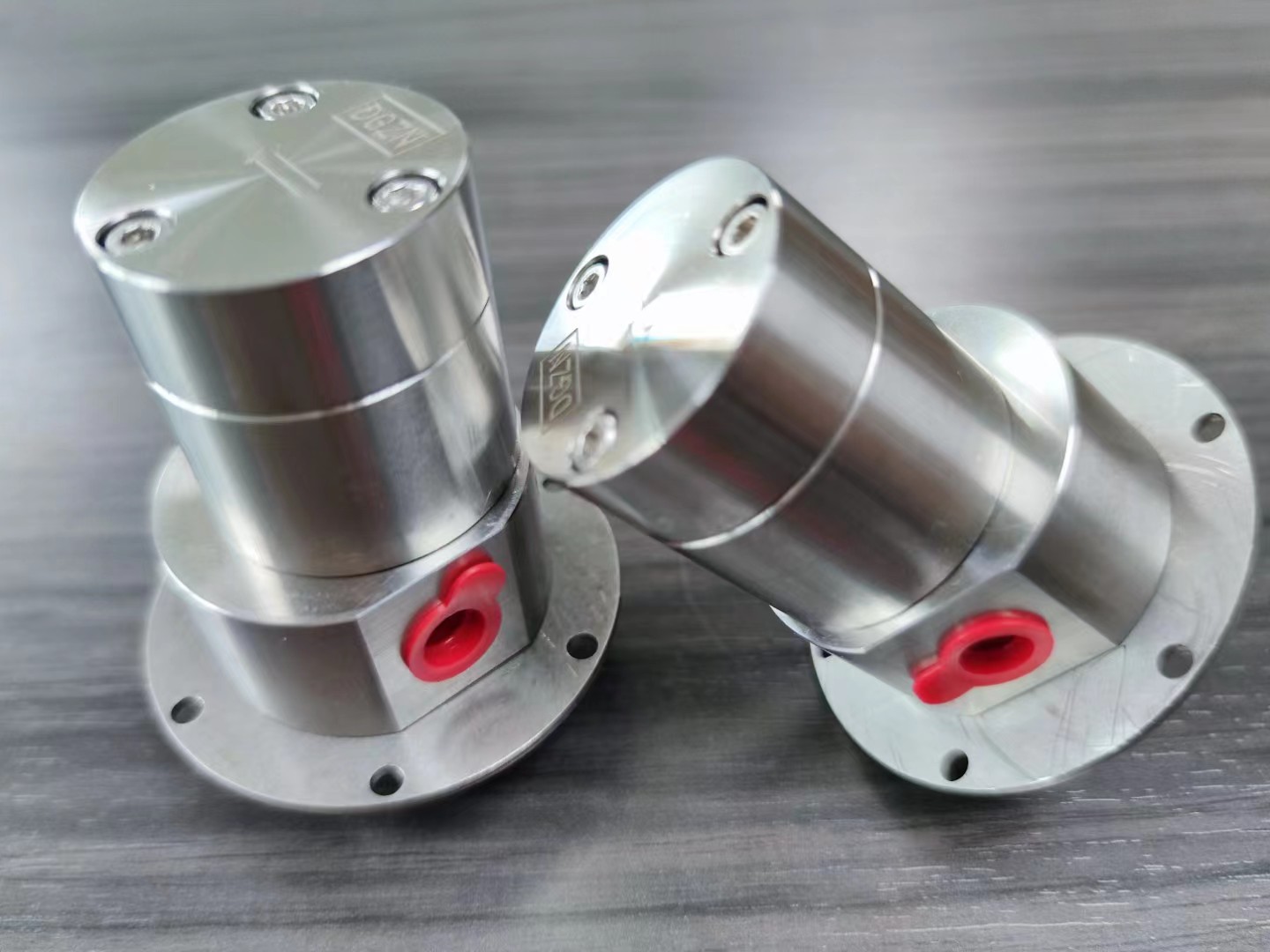 磁力齒輪泵,采用磁力耦合傳動(dòng),實(shí)現(xiàn)無泄漏、無脈動(dòng)平穩(wěn)輸送。316不銹鋼的殼體,PEEK材料的齒輪,聚四氟乙烯的密封材料。采用直流無刷電機(jī)為動(dòng)力,電機(jī)軸端和稀土永磁的外磁環(huán)連接,驅(qū)動(dòng)磁力齒輪泵工作